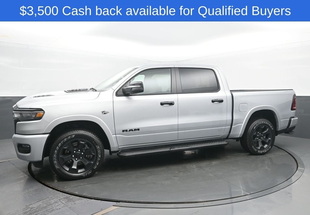 Bed Utility Group (Exterior 115V AC Outlet, MOPAR 4 Adjustable Cargo Tie-Down Hooks, MOPAR Spray in Bedliner, and Pick-Up Box Lighting), Big Horn Level 2 Equipment Group (115V Auxiliary Power Outlet, 115V Auxiliary Rear Power Outlet, 12" Touchscreen Display, 2nd Row in Floor Storage Bins, 3 Rear Seat Head Restraints, 4 Way Front Headrests, 400W Inverter, 4G LTE Wi-Fi Hot Spot, 9 Amplified Speakers with Subwoofer, Air Conditioning ATC with Dual Zone Control, Apple CarPlay, Auto Power-Folding Mirrors, Auto-Dimming Exterior Driver Mirror, Auto-Dimming Rear-View Mirror, Black Exterior Mirrors, Black Premium Power Mirrors, Body Color Fender Flares, Bucket Seats, Center Console Parts Module, Cluster 7.0" TFT Color Display, Configurable Drive Mode, Connected Travel and Traffic Services, Connectivity - US/Canada, Convex Wide-Angle Exterior Mirror Insert, Deluxe Cloth Bucket Seats, Disassociated Touchscreen Display, Exterior Mirrors Courtesy Lamps, Exterior Mirrors with Heating Element, Exterior Mirrors with Supplemental Signals, Front Seat Back Map Pockets, Full Length Floor Console, Global Telematics Box Module, Glove Box Lamp, Google Android Auto, GPS Antenna Input, GPS Navigation, HD Radio, Heated Front Seats, Heated Steering Wheel, Integrated Center Stack Radio, Integrated Voice Command with Bluetooth, Leather Wrapped Steering Wheel, LED Dome Lamp with on/Off Switch, LED Footwell Lighting, Manual Adjust 4-Way Front Passenger Seat, Media Hub with 2 Charge Only USBs, Overhead LED Lamps, Power 2-Way Driver Lumbar Adjust, Power Adjust 8-Way Driver Seat, Power Adjustable Pedals, Premium Overhead Console, Radio: Uconnect 5 Navigation with 12.0" Display, Rear 60/40 Folding Seat, Rear Center Armrest, Rear Power Sliding Window, Rear Window Defroster, Remote Tailgate Release, Security Alarm, SiriusXM Radio Service, SiriusXM with 360L, Steering Wheel Mounted Audio Controls, Sun Visors with Illuminated Vanity Mirrors, Universal Garage Door Opener, and USB Host Flip), Night Edition (Accent Color Door Handles, Accent Color Premium Power Mirrors, Accent Color Tailgate Handle, Anti-Spin Differential Rear Axle, Black Exterior Truck Badging, Black Headlamp Bezels, Black Interior Accents, Black Painted Exterior Mirrors Caps, Black Tail Lamp Bezels, Body Color Front Bumper, Body Color Rear Bumper with Step Pads, Dual Exhaust with Black Tips, Grille Black Surround Black Mesh, RAM Grille Badge - Black, and Wheels: 20" x 9.0" Aluminum Painted Clad), Quick Order Package 27Z Big Horn, 4-Wheel Disc Brakes, 48V Belt Starter Generator, 6 Speakers, ABS brakes, Air Conditioning, Alloy wheels, AM/FM radio, Apple CarPlay/Android Auto, Auto High-beam Headlights, Brake assist, Bumpers: chrome, Cloth Bucket Seats, Cluster 12" TFT Color Display, Compass, Delay-off headlights, Driver door bin, Dual front impact airbags, Dual front side impact airbags, Electronic Stability Control, Front anti-roll bar, Front Bucket Seats, Front Center Armrest w/Storage, Front fog lights, Front reading lights, Front wheel independent suspension, Fully automatic headlights, Heated door mirrors, Illuminated entry, Low tire pressure warning, Manual Adjust 4-Way Driver Seat, Manual Folding Exterior Mirrors, Mopar Black Tubular Side Steps, MOPAR Front and Rear Rubber Floor Mats, Occupant sensing airbag, Outside temperature display, Overhead airbag, Overhead console, Panic alarm, ParkView Rear Back-Up Camera, Passenger door bin, Passenger vanity mirror, Power Folding Multi-function Mirrors, Power steering, Power windows, Radio data system, Radio: Uconnect 5 W with 8.4" Display, RAM Grille Badge - Chrome, Rear anti-roll bar, Rear step bumper, Rear Wheelhouse Liners, Remote keyless entry, Speed Price does NOT include Tax, Title, License or Doc Fee. includes: $3500 - 2026 National Retail Bonus Cash . Exp