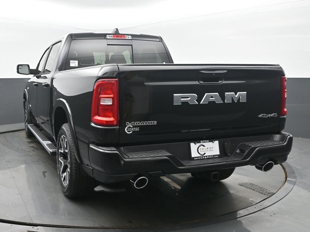Bed Utility Group (Exterior 115V AC Outlet and MOPAR 4 Adjustable Cargo Tie-Down Hooks), Laramie Level 2 Equipment Group (14.4" Touchscreen Display, 4G LTE Wi-Fi Hot Spot, Cluster 12" TFT Color Display, Connectivity - US/Canada, Front Passenger Interactive Display, GPS Navigation, Integrated Center Stack Radio, Power Tailgate, Rain Sensitive Windshield Wipers, SiriusXM Radio Service, and USB Host Flip), Quick Order Package 27H Laramie, Sport Appearance Package (Accent Color Premium Power Mirrors, Auto Power-Folding Mirrors, Auto-Dimming Exterior Driver Mirror, Black Interior Accents, Black Painted Exterior Mirrors Caps, Body Color Front Bumper, Bridgestone Brand Tires, Convex Wide-Angle Exterior Mirror Insert, Exterior Mirrors Courtesy Lamps, Grille Surround 3 Body Color Tex 2 Black, RAM Grille Badge - Chrome, and Sport Performance Hood), 10 Speakers, 4-Wheel Disc Brakes, ABS brakes, Active Noise Control System, Air Conditioning, Alloy wheels, AM/FM radio: SiriusXM with 360L, Apple CarPlay/Android Auto, Audio memory, Auto High-beam Headlights, Auto-dimming door mirrors, Auto-dimming Rear-View mirror, Automatic temperature control, Brake assist, Bumpers: chrome, Chrome Exterior Mirrors, Compass, Delay-off headlights, Dome Dual LED Reading Lamp, Driver door bin, Driver vanity mirror, Dual front impact airbags, Dual front side impact airbags, Dual-Pane Panoramic Sunroof, Electronic Stability Control, Front anti-roll bar, Front Bucket Seats, Front Center Armrest w/Storage, Front dual zone A/C, Front fog lights, Front reading lights, Front wheel independent suspension, Fully automatic headlights, Garage door transmitter, Heated door mirrors, Heated front seats, Heated rear seats, Heated steering wheel, Illuminated entry, Leather steering wheel, Leather Trimmed Bucket Seats, LED Dome/Reading Lamp, Low tire pressure warning, Memory seat, Navigation System, Occupant sensing airbag, Off-Road Information Pages, Outside temperature display, Overhead airbag, Overhead console, Panic alarm, ParkView Rear Back-Up Camera, Passenger door bin, Passenger vanity mirror, Power driver seat, Power Folding Multi-function Mirrors, Power passenger seat, Power steering, Power windows, Radio data system, Rear anti-roll bar, Rear reading lights, Rear seat center armrest, Rear step bumper, Remote keyless entry, Security system, Speed control, Split folding rear seat, Steering wheel mounted audio controls, Tachometer, Telescoping steering wheel, Tilt steering wheel, Traction control, Trailer Brake Control, Trip computer, Turn signal indicator mirrors, Variably intermittent wipers, Ventilated front seats, Voltmeter, Wheel to Wheel Side Steps, and Wheels: 20" x 9" Premium Paint/Polish.