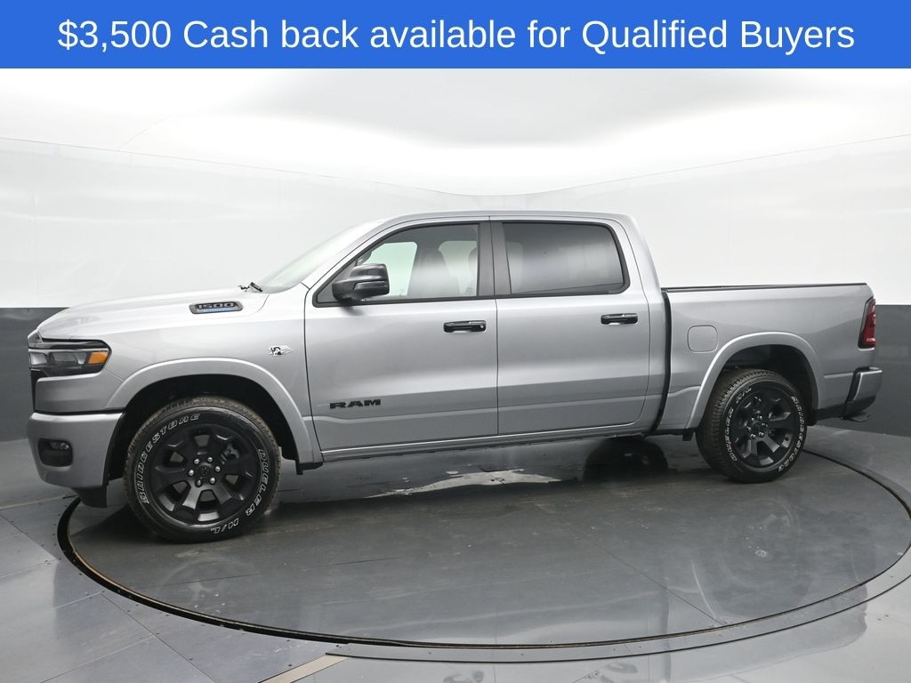 Bed Utility Group (Exterior 115V AC Outlet, MOPAR 4 Adjustable Cargo Tie-Down Hooks, MOPAR Spray In Bedliner, and Pick-Up Box Lighting), Big Horn Level 2 Equipment Group (115V Auxiliary Power Outlet, 115V Auxiliary Rear Power Outlet, 12" Touchscreen Display, 2nd Row In Floor Storage Bins, 3 Rear Seat Head Restraints, 4 Way Front Headrests, 400W Inverter, 4G LTE Wi-Fi Hot Spot, 9 Amplified Speakers w/Subwoofer, Air Conditioning ATC w/Dual Zone Control, Apple CarPlay, Auto Power-Folding Mirrors, Auto-Dimming Exterior Driver Mirror, Auto-Dimming Rear-View Mirror, Black Exterior Mirrors, Black Premium Power Mirrors, Body Color Fender Flares, Bucket Seats, Center Console Parts Module, Cluster 7.0" TFT Color Display, Configurable Drive Mode, Connected Travel & Traffic Services, Connectivity - US/Canada, Convex Wide-Angle Exterior Mirror Insert, Deluxe Cloth Bucket Seats, Disassociated Touchscreen Display, Exterior Mirrors Courtesy Lamps, Exterior Mirrors w/Heating Element, Exterior Mirrors w/Supplemental Signals, Front Seat Back Map Pockets, Full Length Floor Console, Global Telematics Box Module (TBM), Glove Box Lamp, Google Android Auto, GPS Antenna Input, GPS Navigation, HD Radio, Heated Front Seats, Heated Steering Wheel, Integrated Center Stack Radio, Integrated Voice Command w/Bluetooth, Leather Wrapped Steering Wheel, LED Dome Lamp w/On/Off Switch, LED Footwell Lighting, Manual Adjust 4-Way Front Passenger Seat, Media Hub w/2 Charge Only USBs, Overhead LED Lamps, Power 2-Way Driver Lumbar Adjust, Power Adjust 8-Way Driver Seat, Power Adjustable Pedals, Premium Overhead Console, Radio: Uconnect 5 Nav w/12.0" Display, Rear 60/40 Folding Seat, Rear Center Armrest, Rear Power Sliding Window, Rear Window Defroster, Remote Tailgate Release, Security Alarm, SiriusXM Radio Service, SiriusXM w/360L, Steering Wheel Mounted Audio Controls, Sun Visors w/Illuminated Vanity Mirrors, Universal Garage Door Opener, USB Host Flip, and Wheels: 20" x 9" Aluminum Chrome Clad (WRK)), Night Edition (Accent Color Door Handles, Accent Color Premium Power Mirrors, Accent Color Tailgate Handle, Anti-Spin Differential Rear Axle, Black Exterior Truck Badging, Black Headlamp Bezels, Black Interior Accents, Black Painted Exterior Mirrors Caps, Black Tail Lamp Bezels, Body Color Front Bumper, Body Color Rear Bumper w/Step Pads, Dual Exhaust w/Black Tips, Grille Black Surround Black Mesh, RAM Grille Badge - Black, and Wheels: 20" x 9.0" Aluminum Painted Clad), Quick Order Package 27Z Big Horn, 33 Gallon Fuel Tank, 4-Wheel Disc Brakes, 48V Belt Starter Generator, 6 Speakers, ABS brakes, Air Conditioning, Alloy wheels, AM/FM radio, Apple CarPlay/Android Auto, Auto High-beam Headlights, Brake assist, Bumpers: chrome, Cloth Bucket Seats, Cluster 12" TFT Color Display, Compass, Delay-off headlights, Driver door bin, Dual front impact airbags, Dual front side impact airbags, Electronic Stability Control, Front anti-roll bar, Front Bucket Seats, Front Center Armrest w/Storage, Front fog lights, Front reading lights, Front wheel independent suspension, Fully automatic headlights, Heated door mirrors, Illuminated entry, Low tire pressure warning, Manual Adjust 4-Way Driver Seat, Manual Folding Exterior Mirrors, MOPAR Front & Rear Rubber Floor Mats, Occupant sensing airbag, Outside temperature display, Overhead airbag, Overhead console, Panic alarm, ParkView Rear Back-Up Camera, Passenger door bin, Passenger vanity mirror, Power Folding Multi-function Mirrors, Power steering, Power windows, Radio data system, Radio: Uconnect 5 W w/8.4" Display, RAM Grille Badge - Chrome, Rear anti-roll bar, Rear step bumper, Remote keyless entry, Speed control, Price does NOT include Tax, Title, License or Doc Fee. includes: $3500 - 2026 National Retail Consumer Cash . Exp